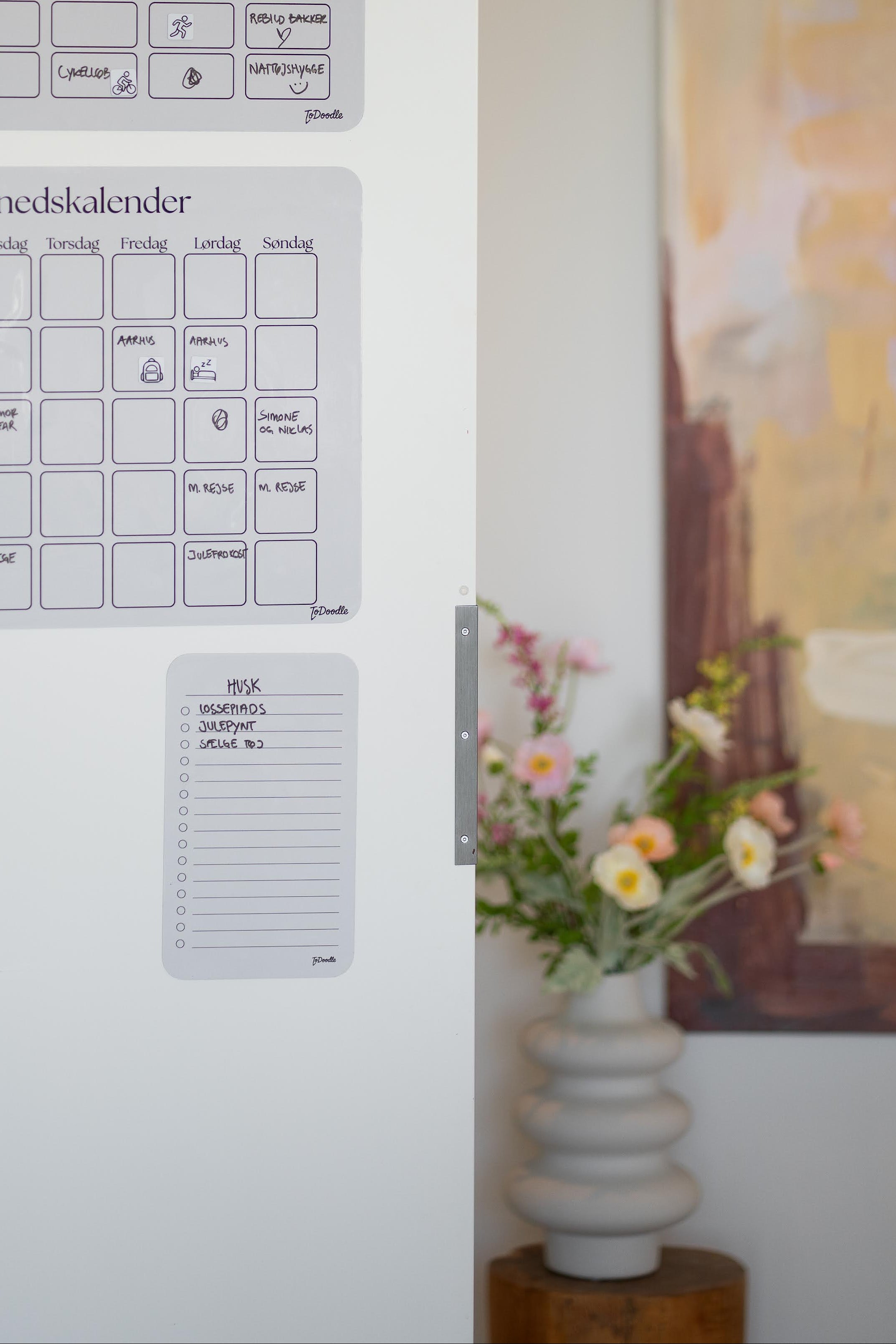 Brug den på køleskabet eller væggen, så den altid er i øjenhøjde.