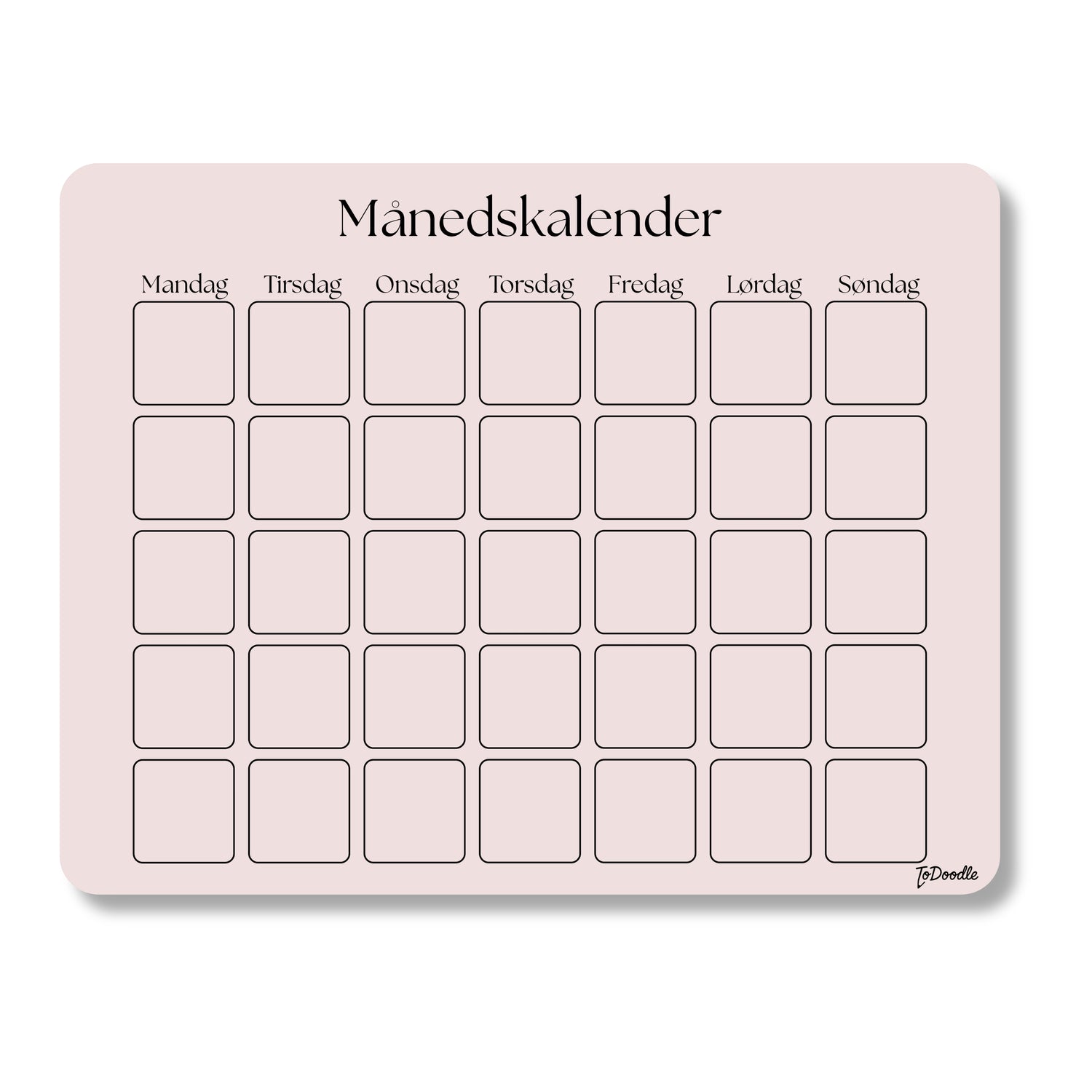 ToDoodle tavlerne er genanvendelige planlægningstavler, hvor du skriver med en whiteboard-tusch og visker ud igen, når noget ændrer sig. De er lavet til at hænge synligt i hjemmet, så hele familien kan følge med i planer og aftaler.